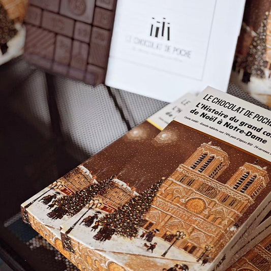 Grande tablette de l'Avent et de Noël - noir 74% pain d'épices BIO - L'Histoire du grand concert de Noël à Notre-Dame