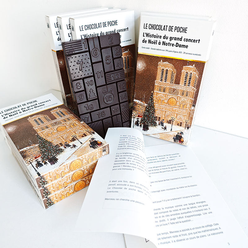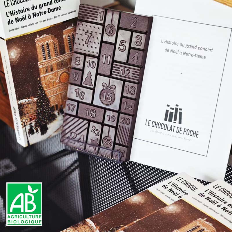 Grande tablette de l'Avent et de Noël - noir 74% pain d'épices BIO - L'Histoire du grand concert de Noël à Notre-Dame