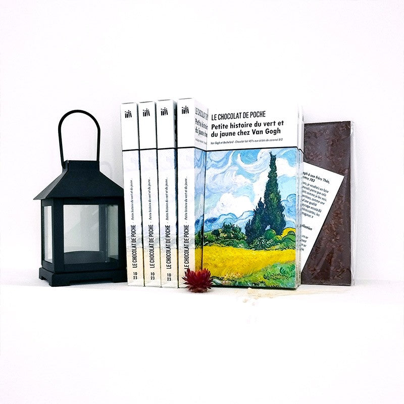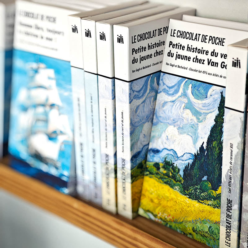 À travers cette tablette-livre lait caramel au beurre salé bio, Le Chocolat de poche invite à explorer la correspondance de Van Gogh mais aussi Le Droit de rêver du philosophe Bachelard, édité aux Presses Universitaires de France.