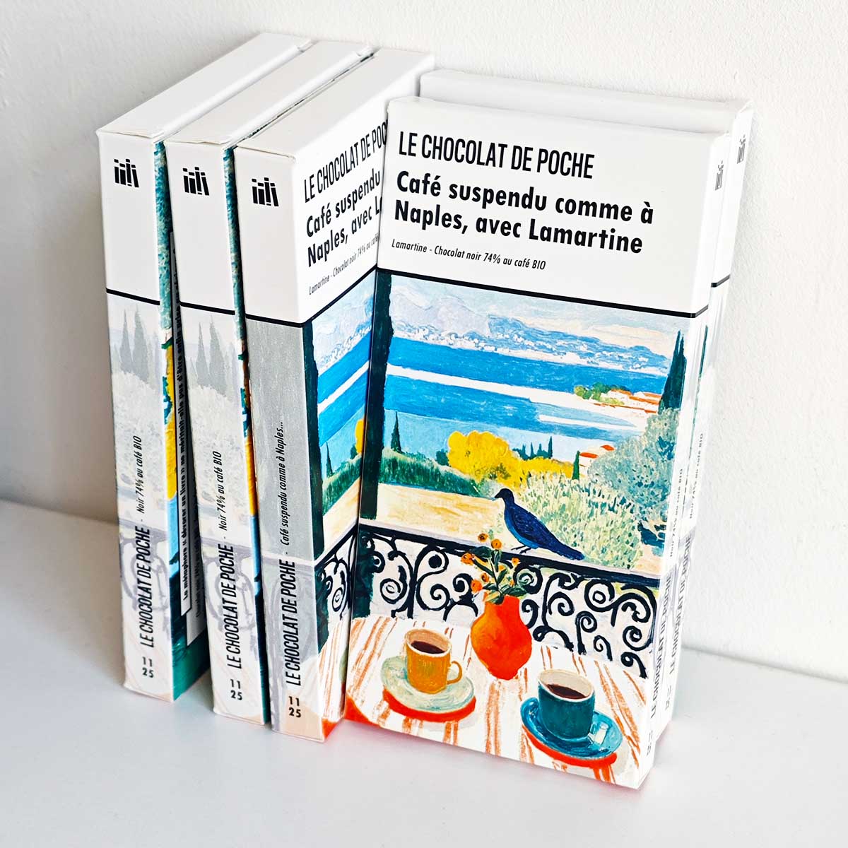 • Texte inclus : évocation de la tradition du café suspendu napolitaine avec extraits des Méditations poétiques de Lamartine